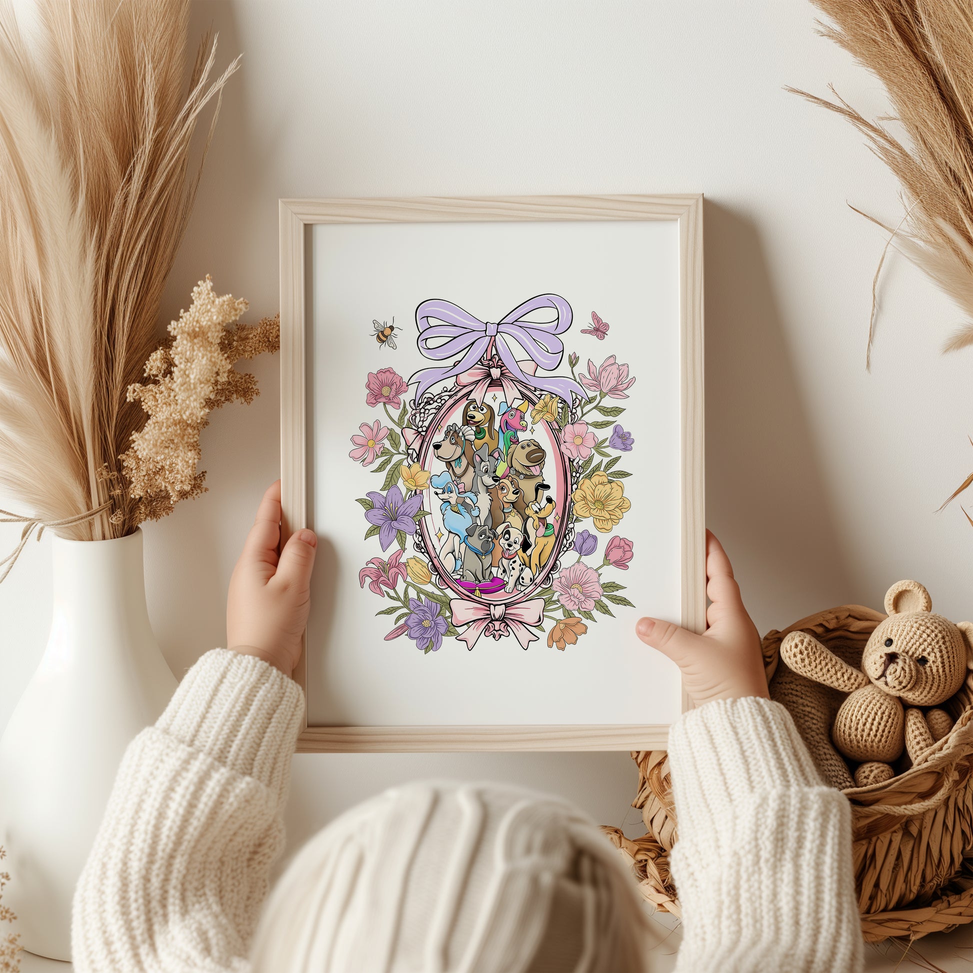 Add a touch of enchantment to your room with our Disney Dogs Bow print.