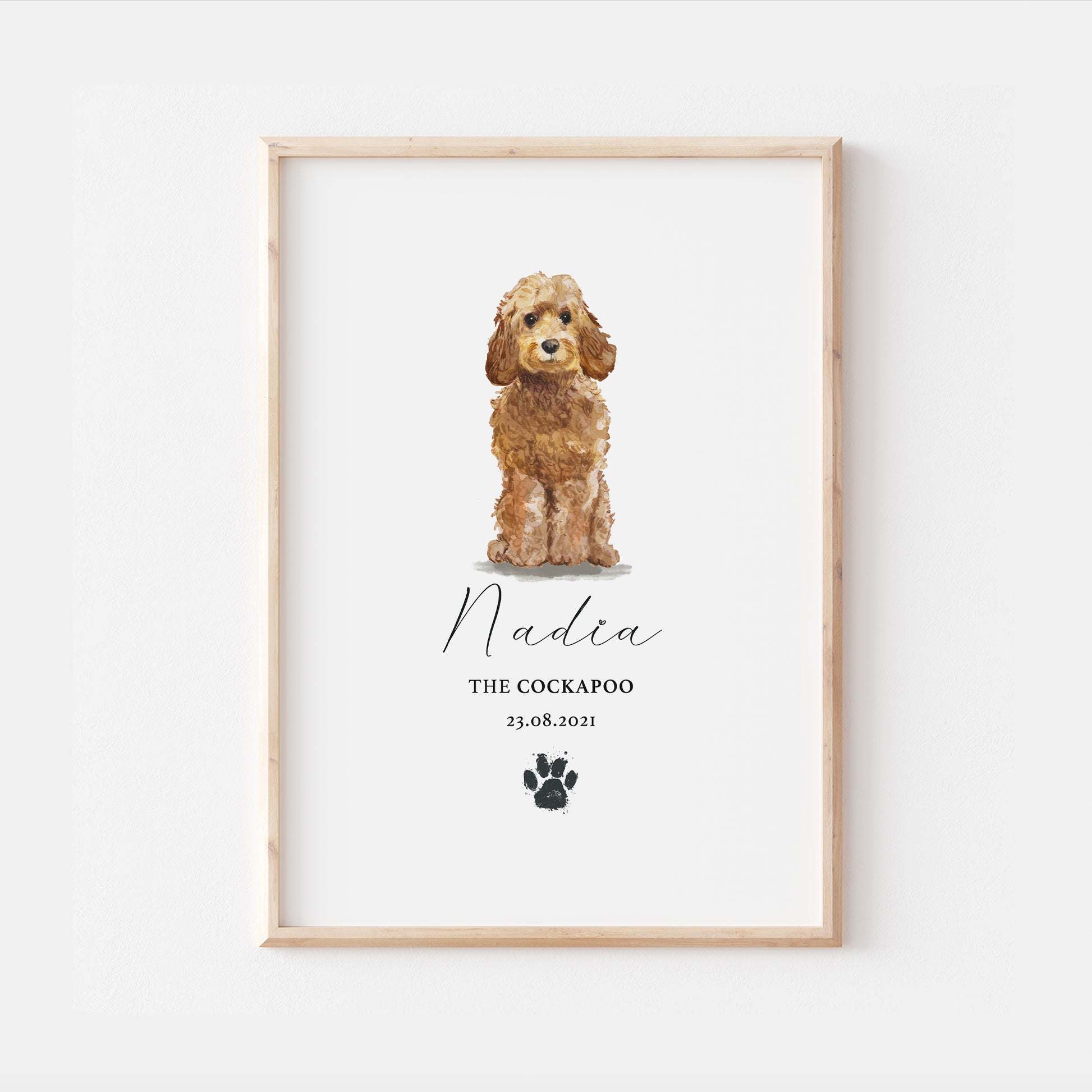 Our personalised Golden Honey Cockapoo Dog print will be a great addition to any room in your home.