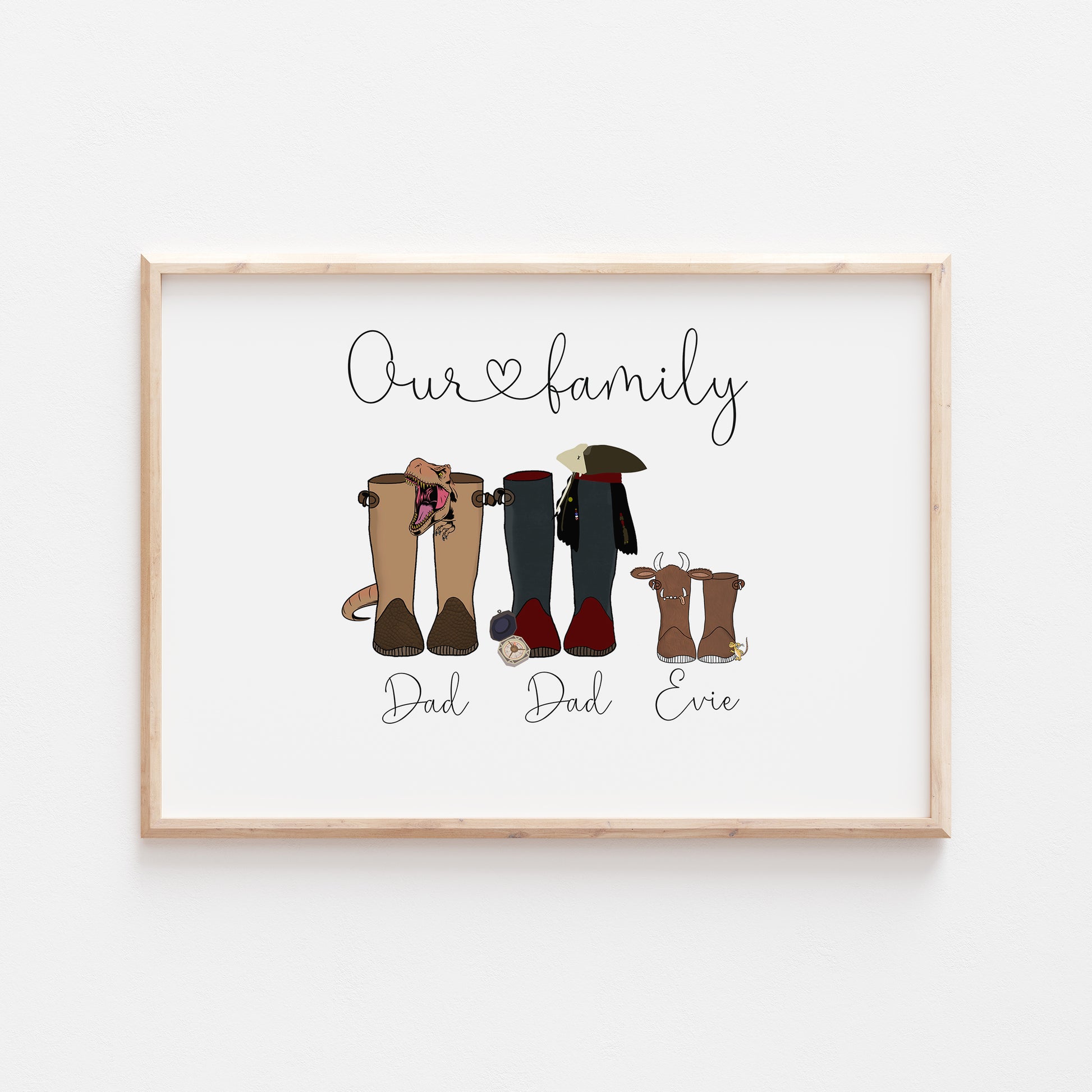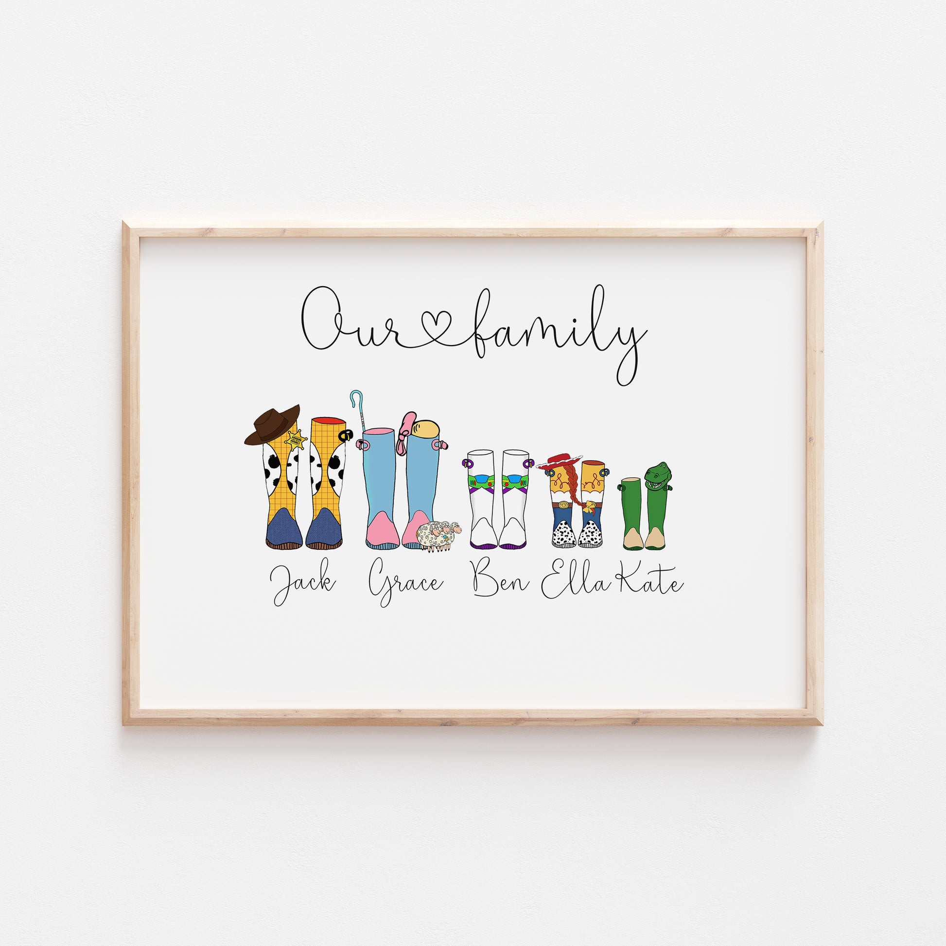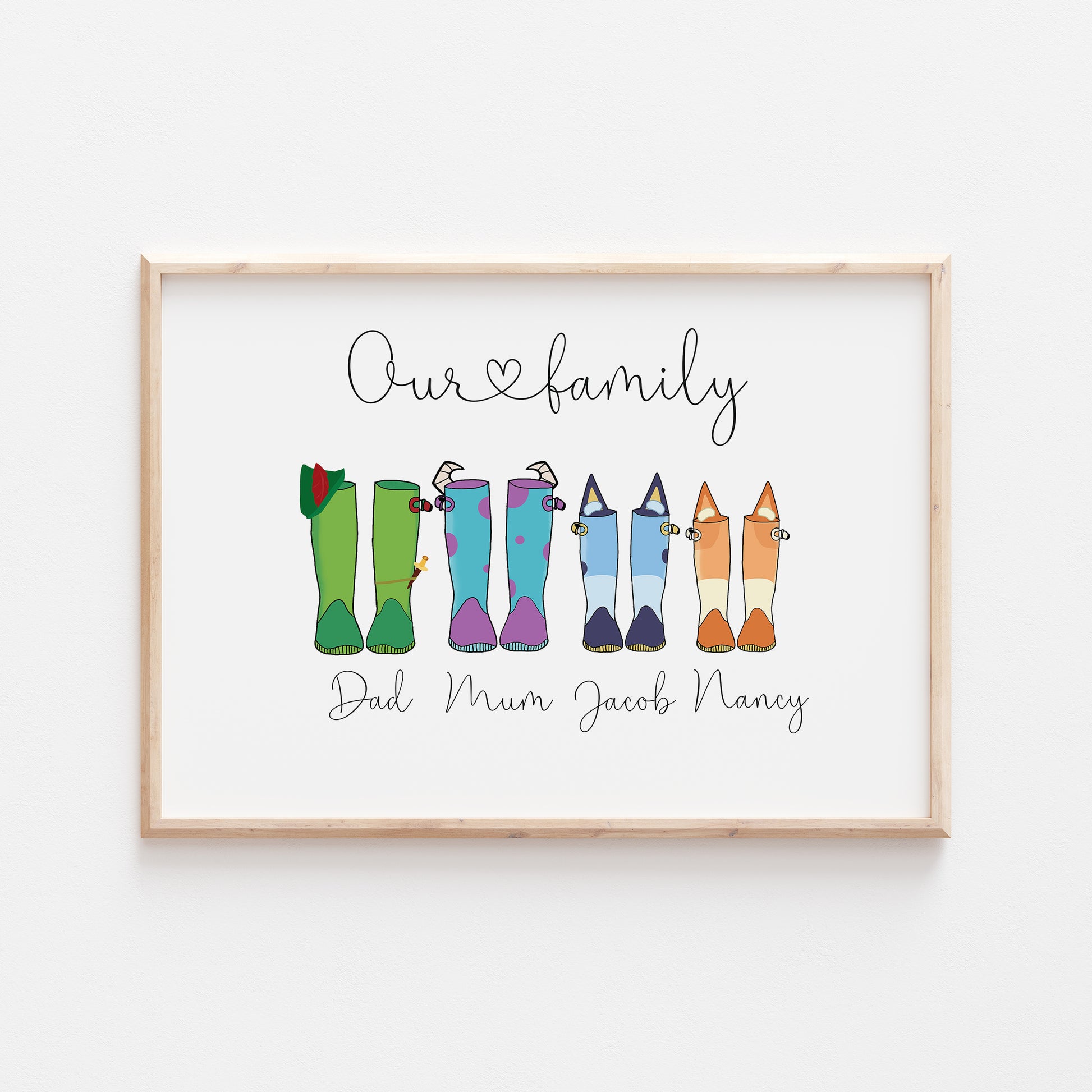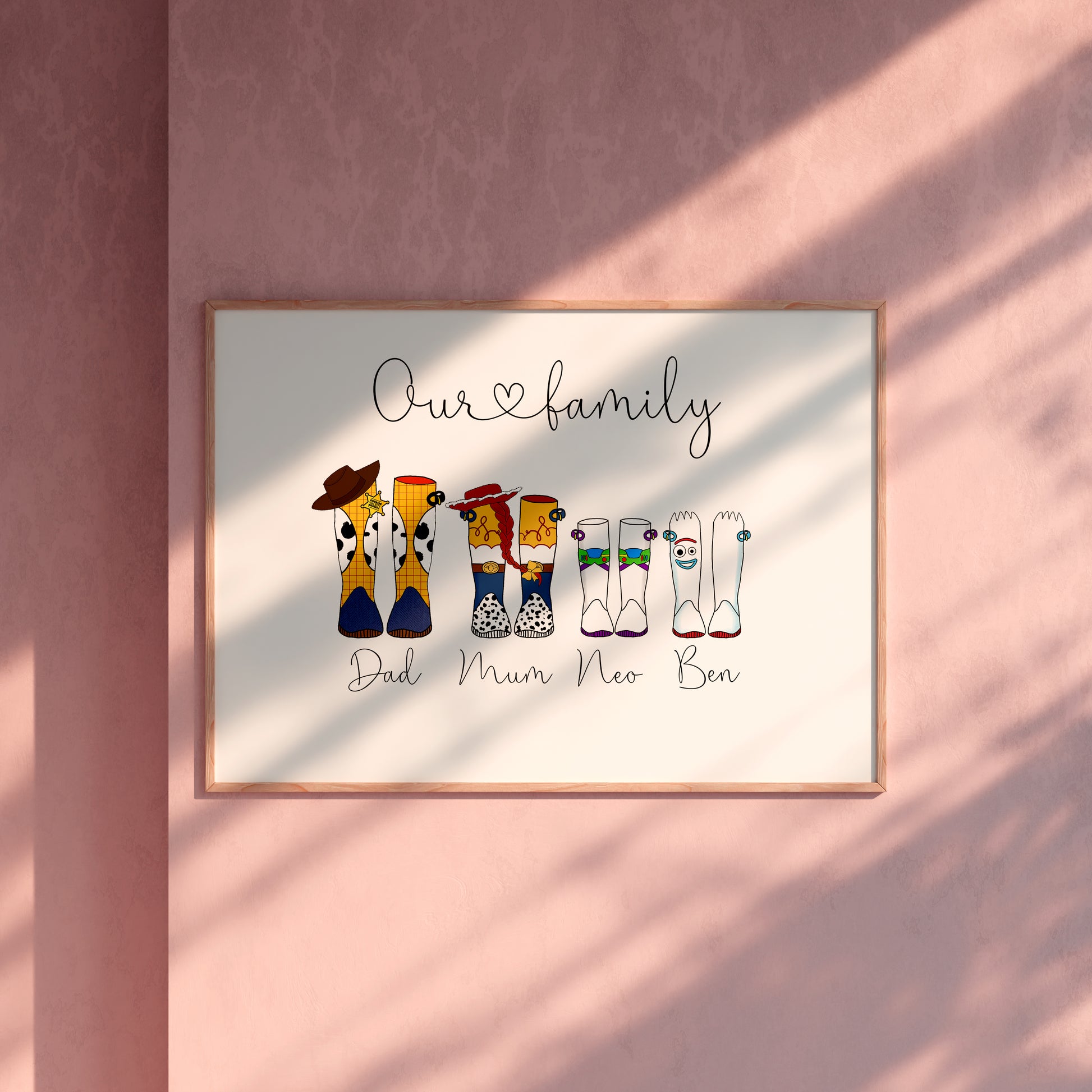 Our personalised movie themed Welly Boots print is the perfect addition to any room in your home. This personalised family print features charming illustrations of Welly Boots portrayed as your favourite characters, making it a unique and special gift for a family member or as a little treat for yourself. Choose characters from Disney, Star Wars, Simpsons, Jurassic Park and more!