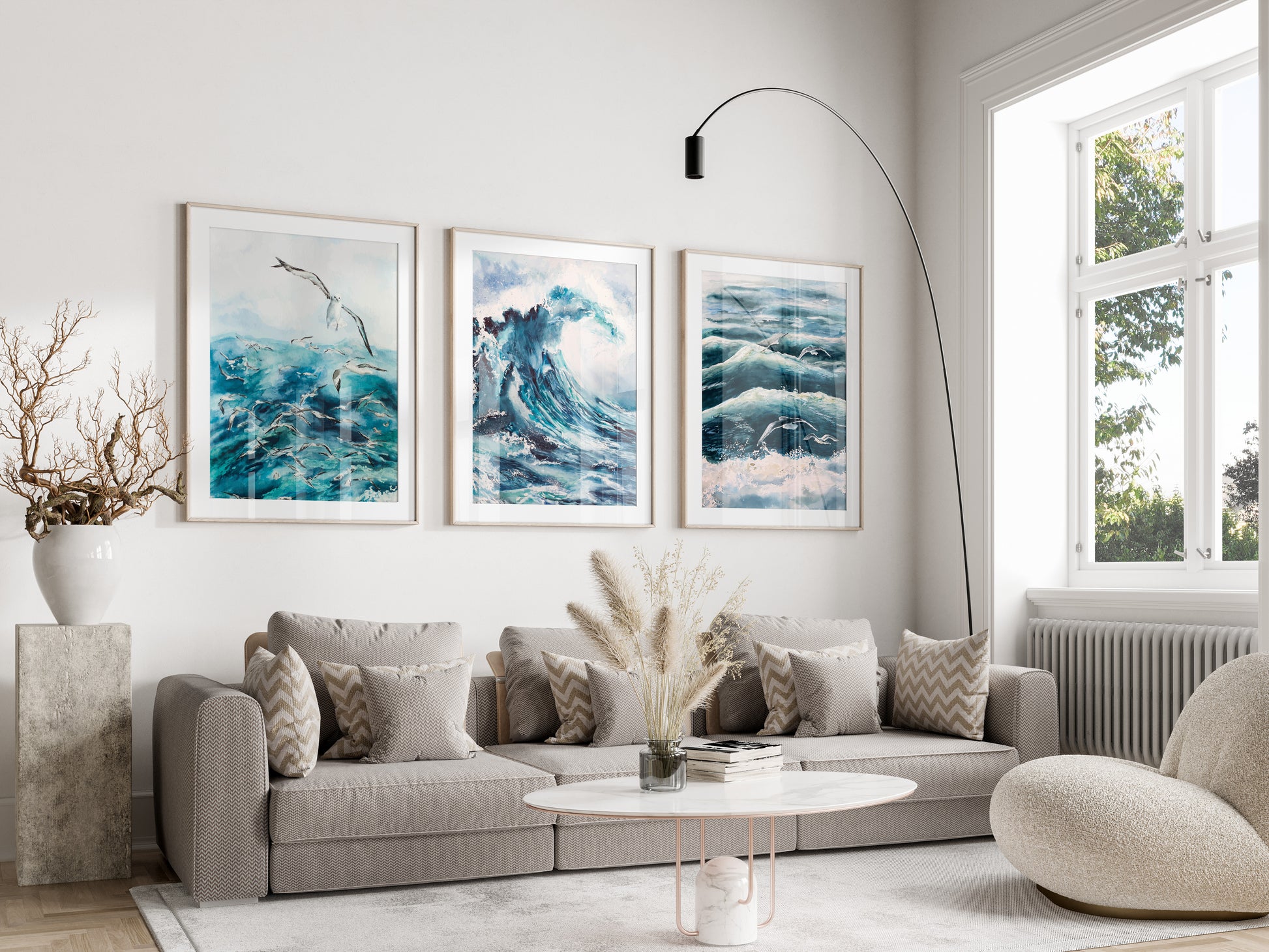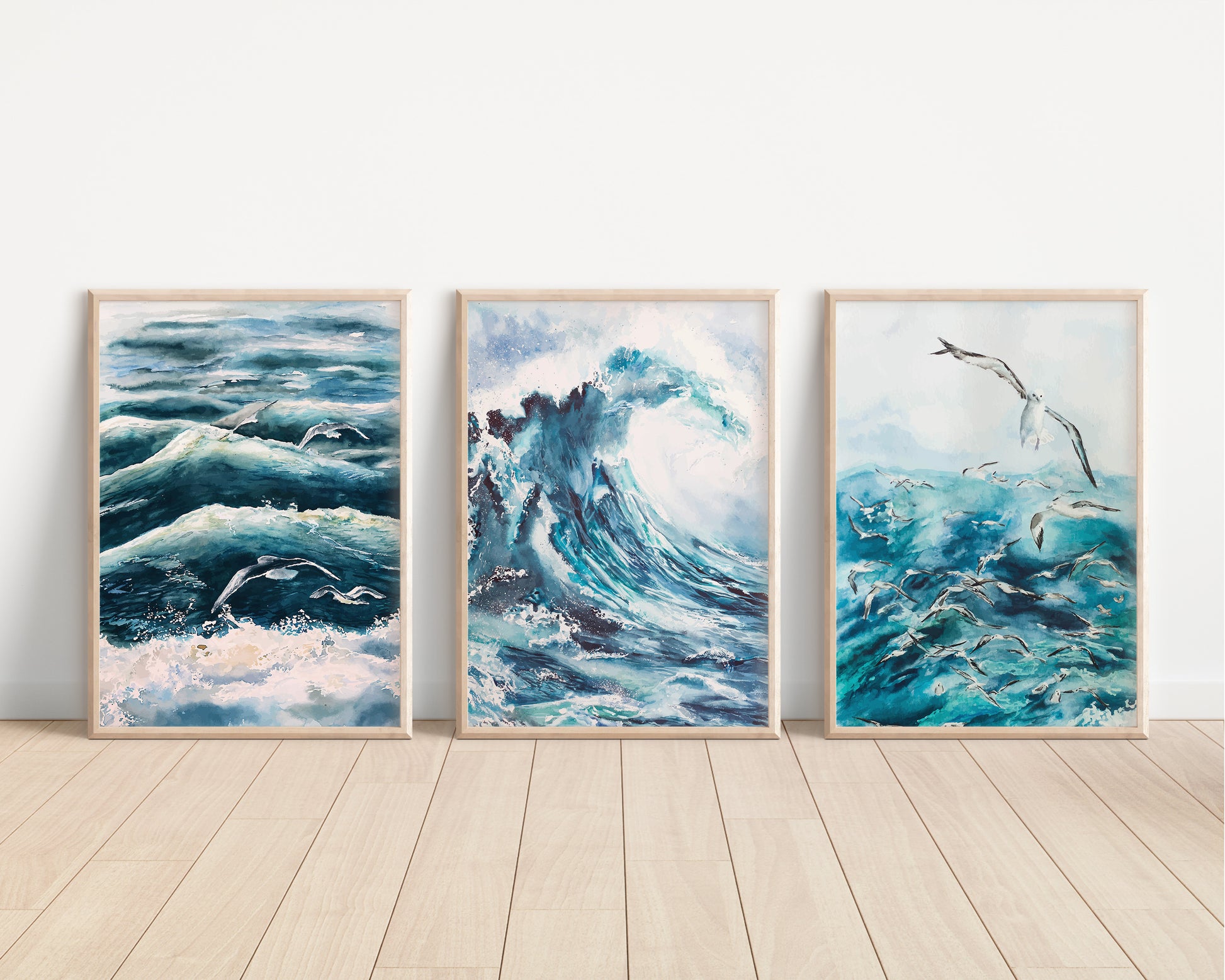 SET OF 3: Add a touch of modern art to your home with our set of 3 Ocean prints.